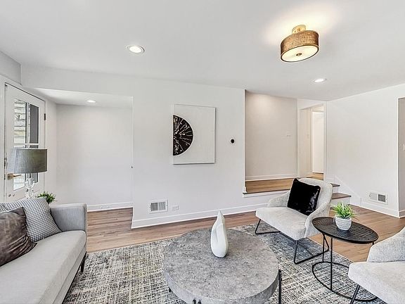 Remarkable Mid Century Classic Completely Redone with Style. Bright and Sunny Living Room opens to the Dining Area. Brand New Eat-In Kitchen Overlooks the Expansive Backyard and Patio. Up just two steps are Three Bedrooms and a New Full Bath. Lower Level has a Spacious Family Room, the 4th Bedroom and another New Full Bath. A few steps down is the Laundry Room and a huge amount of storage. The One Car Attached Garage is conveniently located by the Kitchen. There is plenty of space to add another garage in the back.