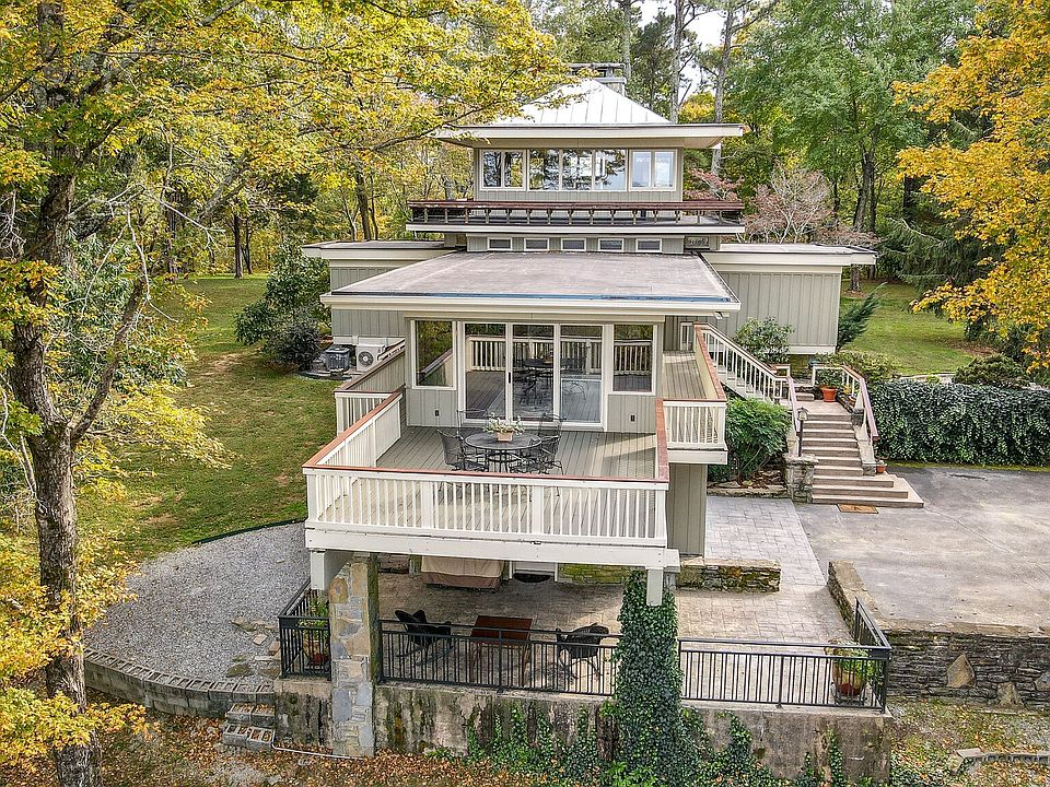 Absolutely amazing one of a kind property* 3BR*3BA*Study/Den with gas fireplace which could be 3rd BR on main floor*Amazing "living room" Cupola on top floor with wood burning fireplace, surround sound and cantilever deck*Large kitchen and breakfast area to walk out deck and amazing view*Architect was Charles Wright who studied under Frank Lloyd Wright*approximately 1400 sq.ft. of porches and decks*400 sq. ft. heated(not cooled) ... (office/studio with full bath) & 400 sq. ft. workshop below -