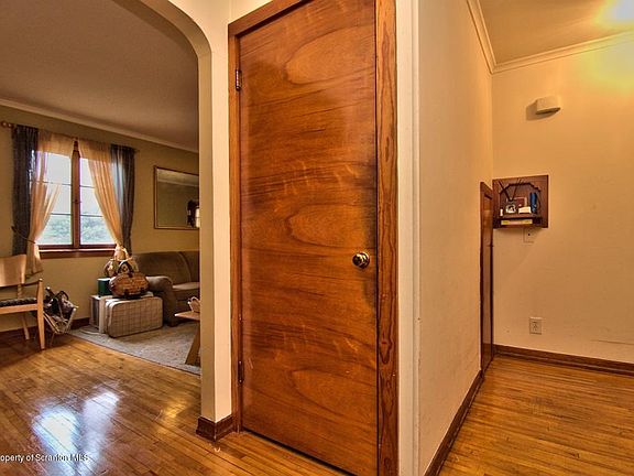 Hardwood floors in living/dining room, hallway and bedrooms. Plenty of closet space, eat-in kitchen, semi-modern bath, walk-up to attic for additional space. Unfinished basement.