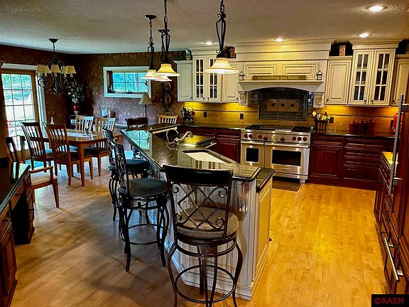 A quality built home in a beautiful mature neighborhood close to South Elementary and Gustavus. Rebuilt in 1998, then another big remodel in 2007 creating a wonderful open kitchen with granite countertops, large foyer, extra large main floor mud room, living rim with fireplace and French Doors that lead to a great 4 season sunroom. Patio Doors off dining that take you to a very nice paver patio. Nice size bedroom on the main with walk in closet -adjacent to a full bathroom with double sinks, tiled shower, soaker tub, and heated floors. Another 1/2 bath on the main level as well that connects to your mud/laundry room. The lower level is very spacious with a walk out to the backyard, a famly room with another fireplace along with another rec room, 2 bedrooms, 3/4 bath, and lots of storage. There's a double attached garage along with an extra garage that comes in towards the side/rear. This is a home with character and you will want to check it out!