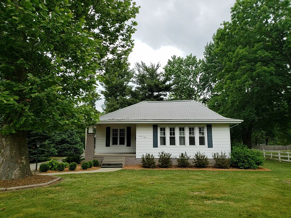 CHARMING, FULLY REMODELED BUNGALOW ON BEAUTIFUL HALF-ACRE LOT! Spacious rooms! 1,146 sq ft plus full, partially finished basement. New kitchen, bath, windows, doors, flooring, appliances, roof, central air, landscaping. Master walk-in closet. Kitchen pantry, Laundry room with utility sink. Plumbing for second bath. Fridge, range with hood, dishwasher, disposal, washer, dryer, garage door opener. Large breezeway for entertaining. Oversized garage with circle driveway. Quiet neighborhood with mature trees. Location convenient to shopping and restaurants. Priced according to recent loan appraisal.