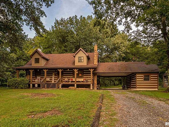 Three bedroom/ two bathroom log home sitting on 25.68 acres in Sesser School District. Approximately 3 acres in pasture and 5 acres farmed for yearly payment. Remaining acreage is wooded. Wildlife is abundant and perfect for the outdoor enthusiast and hunter. Home has a 24 x 16 wood shed, a large barn, and a 12 x 10 Tru-Built storage shed. Home is a an "Honest Abe Log Home" from Murfreesboro, Tennessee and was originally built for Country Music Artist and Southern Illinois native Billy Grammer. Home has open floor plan with kitchen, living room, laundry room, and master bedroom on the main floor. The living room has a wood fireplace that is a secondary heat source but easily heats the whole home if owner wishes. Upstairs is two more large bedrooms with a bathroom in between. A 40 x 8 sunroom sits at the back of the house and provides wonderful views of the acreage. A breezeway is perfect for parking and connects to a 10 x 17 workshop or storage area. Call for more details!