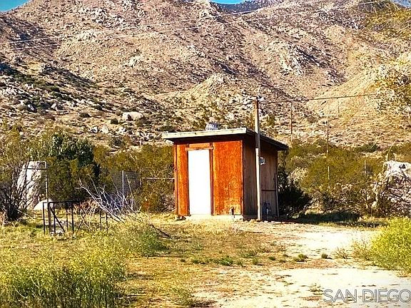The Spring Desert Special is here! This fully fenced, 1 acre parcel in Shelter Valley is perfect for the buyer wanting a get-away place to restart life. The property comes with a two-car garage, septic, well and shed. The original home, built in 1976, is a George Thorogood Special (Bad to the Bone) and may be beyond repair at this time. The location is exceptional. Set at the end of a well paved cul-de-sac, the lot is surrounded by views of Anza Borrego Desert State Park. The perfect place to redevelop. Your future desert home is calling.