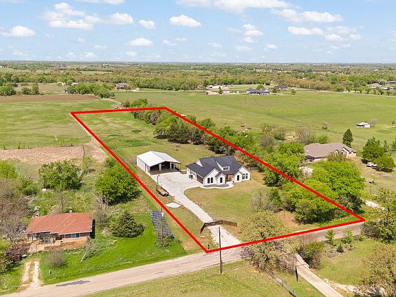 Welcome to this stunning modern farmhouse in Grandview, Texas and right on your own little slice of Texas land! This charming 3-bedroom, 2-bathroom home with an office offers the perfect blend of style, comfort, and functionality. As you step inside, you’ll be greeted by an open-concept living area featuring luxurious vinyl plank floors and an electric fireplace with built-in cabinets, creating a cozy and inviting atmosphere. The chef's kitchen boasts beautiful quartz countertops, silgranite sink, an amazing walk-in pantry with plenty of storage space, making it perfect for both cooking and entertaining. The home is thoughtfully designed with split bedrooms for added privacy. The master suite is a serene retreat with an en-suite bath, while the additional two bedrooms are generously sized and share a beautifully appointed second bath. The large utility room features built-in cabinets and a sink, making laundry chores a breeze. For your furry friends, a dedicated dog room and fenced yard provide the perfect space to play and roam, while the entire property is fenced and cross-fenced for additional privacy and security. Hang out outdoors on your large covered patio and entertain your guest for every occasion or just sit and listen to the Texas nature sounds. The 40 x 40 workshop with a 20ft apron is an incredible bonus, ideal for hobbies, storage, or a small business. You can add electricity and water easily out here also as it is plumbed and has conduit ran for it. A seamless metal roof gives you almost a lifetime of protection on this home. This modern farmhouse in Grandview ISD with partial pipe fencing, gated entry, cross fenced, and right off hwy 4 for easy access to the main road!