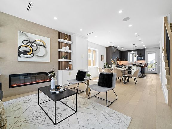 Stunning new half duplex, built with quality finishes and attention to detail. The main floor features an open-concept layout with a cozy fireplace, engineered hardwood floors, in-floor heating, a gourmet kitchen with premium integrated appliances, and quartz counters. Step outside to a covered deck overlooking your private backyard. Upstairs offers 3 bedrooms and 2 bathrooms, including a generous primary suite with walk-in shower, and private balcony with city views. The basement is complete with 2 beds, 1 bath, and a rec room with separate entry—perfect for in-laws or rental potential. Additional features include A/C, CCTV cameras, crawlspace for storage, garage plus carport parking. Located close to transit, schools, parks, and shops. A perfect blend of luxury, comfort, and convenience.