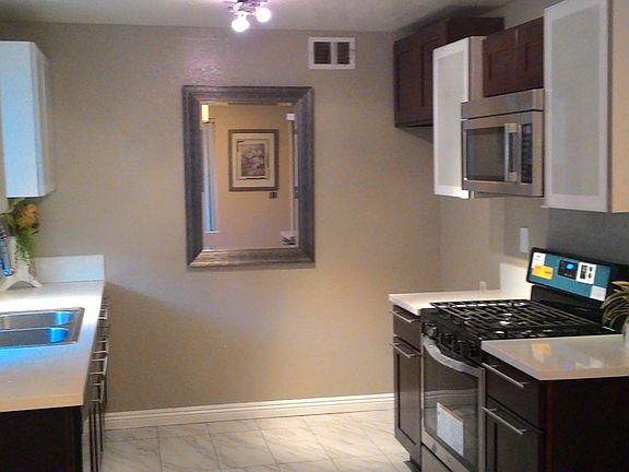 Completely remodeled 2 bedrooms and 1.5 bathroom townhome style home with approx. 1,000 sqft. New laminated woodfloor throughout, new tiles in both baths. New tub, toilets, vanities, light fixtures and more. Fresh paint. Newer kitchen with modern cabinets, built in microwave and new stainless steel gas stove. Quartz counter top. All on first floor with NO steps. Community swimming pool and located next to a park with tennis courts. This unit will go very fast.