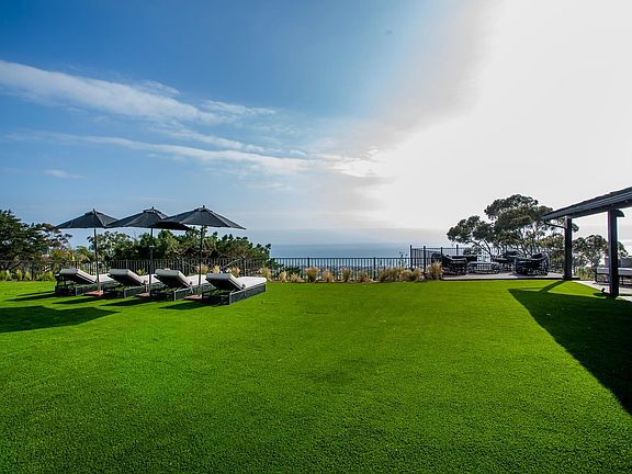 La Jolla Reserve, Stunning View property and vacation home in upper Country Club, move in today! Fully furnished and just remodeled with mid-century modern designer finishes. Enjoy year round entertainment and unobstructed ocean views from every vantage point. Featuring, an enclosed and expansive turf yard for private parties; wellness center with cold plunge spa, sauna, sun deck, wrap around porch, BBQ and dining area. The ocean view great room opens up to the formal dining room and galley kitchen with coffee & wine bar. Three generous king-sized ensuite bedrooms with personal TV's, welcome your guests with cozy linens and sunset views. Formal powder room, laundry and mud room with 2 car garage complete this unique compound. Property abuts to the La Jolla Park, 46 acre reserve and hiking trails down to the village and beach.