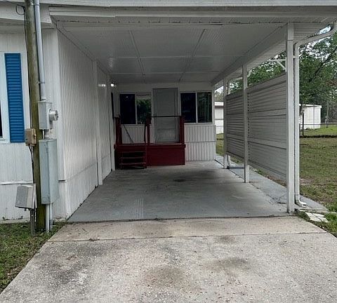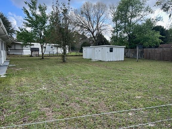 Nicely kept 2 bedroom 2 bath home located on .63 acres completely fenced with multiple gates including a double gate. Two sheds with electric located on the property for storage. There is a carport in the back of the home with a concrete pad. Florida room on the back of the home is air conditioned and lined with nice bright windows and a screen porch on front of the home. Two bedrooms with a split floor plan. Two full bathrooms. Spacious kitchen and living area. A dog may be permitted with owner's approval.