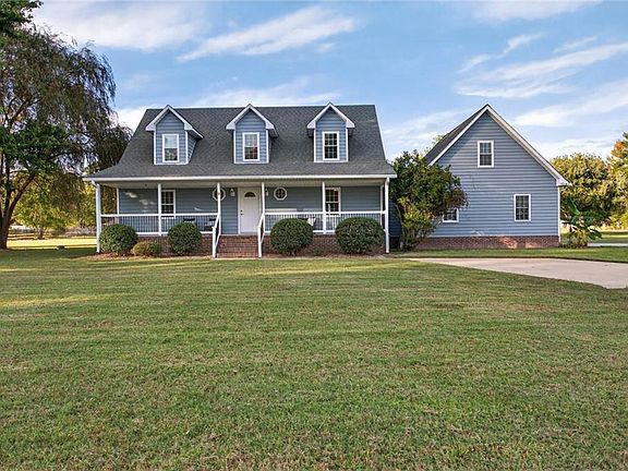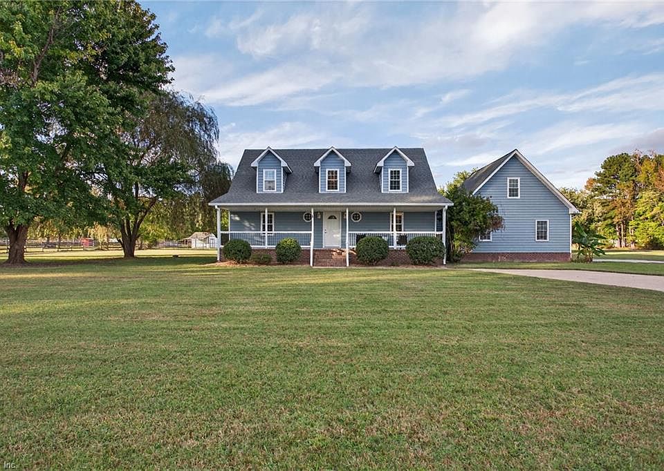 Beautifully updated Cape Cod on 1.24 acres of peaceful country living! This 4-bedroom, 2 full & 2 half-bath home features a flowing & flexible main living area with a formal dining that can easily be an office, large great room w/cozy fireplace open to the eat in kitchen & cooking area for entertaining. The FROG is the 4th bedroom. Enjoy a brand-new kitchen w/updated cabinets, counters, flooring, & appliances. Fresh paint throughout & some new flooring. The large primary suite includes a walk-in closet & private bath. A convenient mudroom off the garage has a washer, dryer, & half bath. 2 car side loading garage & plenty of parking for all your toys! Relax or entertain by the above-ground pool with oversized deck—perfect for enjoying starlit country nights. Pool recently closed by Oliver Pools. Easy 45-minute commute to Petersburg, Richmond, or Virginia Beach via Route 460. Welcome Home!
