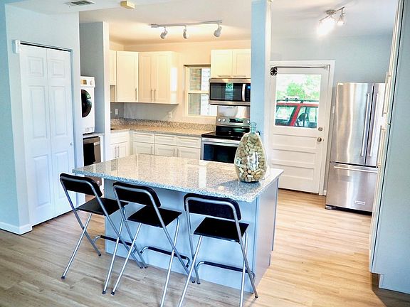 -The kitchen is brand new featuring top of the line stainless steel Whirlpool appliances, granite countertops, USB charging ports, LED lighting, french door refrigerator, and extensive cabinetry and open island with bar top.