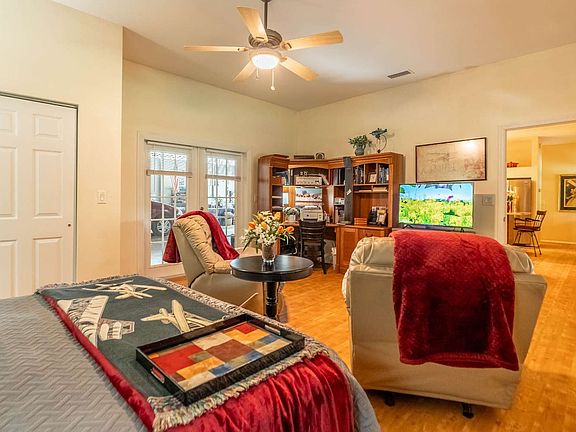 Beautiful hangar apartment on 10.4 acre half-wooded lot, including both banks of Little River. Oversized 49'x56' hangar with 14' tall sliding doors is big enough for two planes. Flying Oaks aviation community is part of Flying Little River and is attached to FL10 Little River Airport that is a private airport for residents. Shared use of 3,375x50' turf runway is included in $350/yr HOA fee. Fully equipped hangar features many outlets, several seating areas, mechanic zone, sink, and direct access to bathroom. Living room is quite versatile and could be used as an office, home theater, flight simulation/gaming room, fitness area, or guest suite. Back patio features 12'W by 56'L screened-in porch overlooking the vast foliage, magnificent green trees, and the small creek that runs through the West side of the property. Perfect for entertaining, family gatherings, or just relaxing and nature-watching. It is common to see wild turkey, deer, cardinals, pileated woodpeckers, and hawks. RV hookup in covered carport area. Very private large lot, at the end of the small road. On the Southside of the property behind the hangar is another metal shed about 720 square feet with electric and lighting. The water heater is hooked up to solar panels. Cable and internet services are available. The property is on a well that is about 140ft deep. There is plenty of land to build a main house and then the hangar apartment could be converted into a pilot’s lounge.
