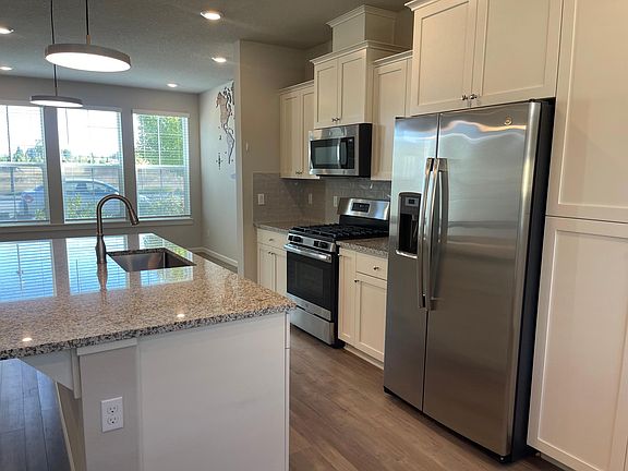 Welcome to the 2 suites townhome. This 5 years new townhome has so much to offer. Walking into an open floor plan with spacious living room that has a fire place you can cosy up with and dining room with a large island. White cabinets and large windows brighten up the home. Stainless kitchen appliance and gas stove included. One primary suite and one guest suite on the second floor. The enclosed concrete yard is private and easy to maintain. 2 car garage. The townhome is across to future shopping center. No pets, no smokers.
