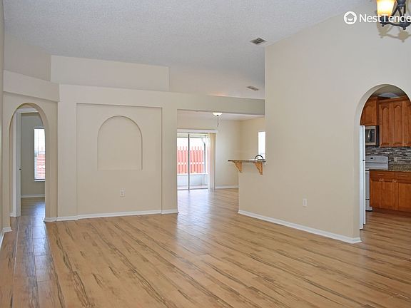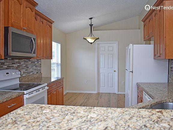1874 sq. ft. 4BR/2BA home located in the Overland Park community with easy access to Military Bases and Shopping. Very spacious home with a vaulted ceiling, an open-concept living room, and a dining room with a separate den. Ceramic wood grain tile flooring throughout the home. The kitchen has granite countertops, beautiful wood cabinets, and a breakfast nook. The kitchen overlooks the den, which leads out to the screened lanai. Spacious Primary Bedroom with large walk-in closet with storage system, garden tub, and separate shower. The home has three generously sized guest bedrooms and a separate bath. Washer & Dryer hookups. Double car garage. Please note: For the safety of all parties, showings are scheduled at least 24 hours in advance. Minimum one-year lease term. This home is managed locally from Northeast Florida by the responsible, attentive, and service-focused Property Managers of NestTenders. Experience a higher level of care when you choose NestTenders as your rental partner! We are a professional, licensed real estate Broker focused solely on property management. Smarter Renting - Better Living - NestTenders