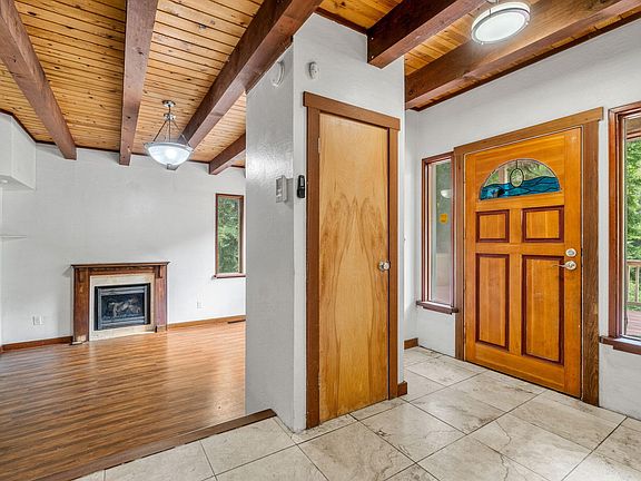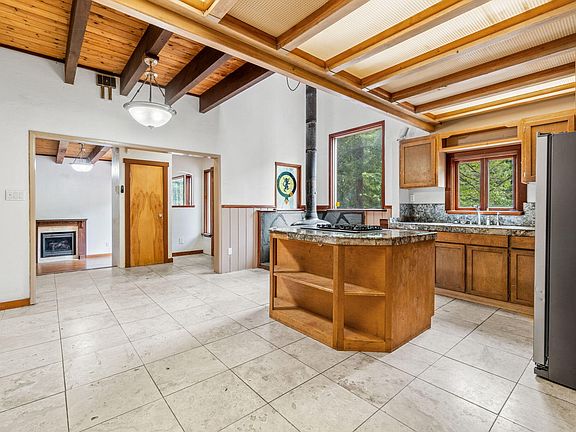 Get away to your own private mountain retreat, serene wooded tranquility, yet close to town. This custom home sits atop a gated private driveway with an expansive deck ,a custom interior including a cedar spa room. Sunken Living room with gas fireplace. Wood wrapped windows, Custom large open kitchen with nice Granite counters, cabinets and island, a combo dining and family area with tile floors. 90+ % efficient forced air heat, large woodstove. There's custom bathroom features, and an upstairs loft and deck off the large primary bedroom that has vaulted wood ceilings. There's skylights, solar tube, back up generator, stained glass windows and more which all add to the custom features of this one owner custom designed home in a peaceful very private wooded setting.