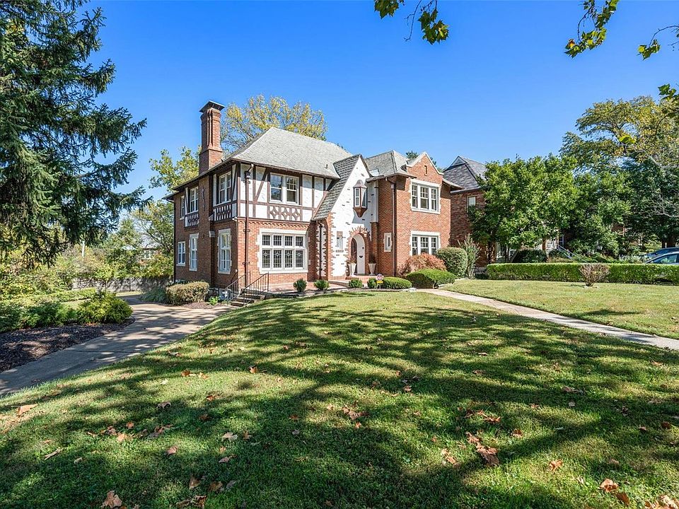 Fabulous price improvement! Originally, home of developer of University HIlls, this impressive 2 story Tudor was designed w/spectacular architectural features. From the beautiful, arched, wood front door to the massive great room w/ 10' ceilings, stone fireplace & imported wood paneled walls, this home will impress. The large eat-in kitchen has been updated w/ beautiful quartz counters & backsplash & features white solid wood cabinetry. Kitchen & adjoining sitting rm new luxury plank flooring. Large formal din rm, family rm & powder rm complete mn flr. 2nd flr has 4 very spacious bedrooms including mstr suite w/ ensuite bath & 2 closets. 2nd full bath has new vanity, lighted mirror, ceiling light & has separate tub & shower. Wood floors throughout all recently refinished, entire interior & much of exterior recently painted, new sewer lateral, original slate roof w/hand cut corners. Wonderful circle drive provides easy access! Clear UCity inspection report. Open Sunday 1/7/24 from 1-3