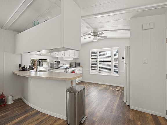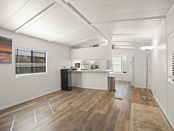 Welcome to your beautifully renovated 1-bedroom, 1-bathroom mobile home at 7368 Hollister Avenue, Space 26, located in the Coastal Community of Ellwood Station in Goleta, CA. Perfectly situated away from the main road, tucked in the back, and conveniently located near the side entrance on Elwood Station Road. Remodeled in 2022, this charming home offers a modern, open-concept living space with sleek laminate wood flooring and abundant natural light. The thoughtfully updated kitchen features an eat-in layout making meal prep a breeze. The bedroom provides a cozy retreat, while the updated bathroom adds contemporary style and functionality. Additional features include window blinds; and washer/dryer for added convenience.