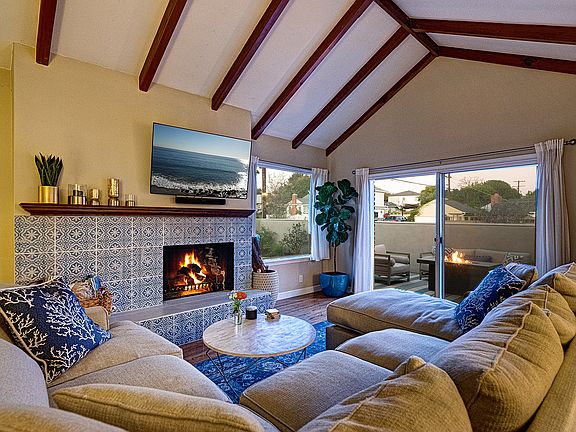 This storybook cottage on a corner lot is a welcome retreat from city life. Enter through the pristinely landscaped front yard through a Dutch door into a formal, sun-drenched living room. The newly renovated kitchen is the ultimate entertainer's delight featuring white maple display cabinetry, wine storage, and coastal granite countertops. Continue through to the family room featuring vaulted ceilings, exposed beams, and a statement fireplace with artful mosaic tile backsplash. The master bedroom offers custom built-in closet and dresser storage. A newly renovated master bath boasts soaking tub, walk-in shower and beveled subway tile thruout. Down the hall, two addl oversized bedrooms, bathroom, and laundry area complete the interior living space. Off the family room, a tranquil outdoor entertaining space awaits. From there, enjoy verdant views across the generous lawn with landscaping that features mature fruit trees ready to inspire and delight.