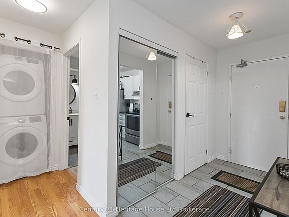 Affordable Modern Condo Ideal for First-Time Buyers or Investors. This bright, furnished modern condo offers an excellent opportunity for first-time buyers or investors looking for a turnkey rental property in a growing, well-connected neighborhood. With a clean, open-concept layout and thoughtful updates throughout, this unit offers both comfort and convenience at an affordable price point. The spacious living and dining area is filled with natural light and features a cozy electric fireplace, perfect for relaxing evenings. The kitchen includes ample cabinetry, modern appliances, and a breakfast bar ideal for casual dining or entertaining. The generously sized bedroom offers a large closet, and the updated bathroom includes a full tub and shower. Enjoy the convenience of in-suite laundry and separate heating controls for year-round comfort. Step out onto your private balcony or take advantage of the buildings excellent amenities, including a fully equipped gym, an outdoor pool, and visitor parking. The building also offers controlled entry for added security, is pet-friendly with some restrictions, and allows for year-round living. Additional features include a water heater, a well-managed condo board, and access to public transit, shopping, parks, and nearby hospitals. Two dedicated parking space is included. Whether you're entering the market for the first time or expanding your rental portfolio, this affordable condo combines lifestyle, location, and value. Quick closing available. Don't miss this opportunity to own a low-maintenance home in a desirable location.