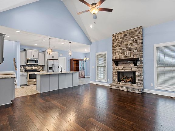 Welcome to The Heritage Subdivision! This beautifully maintained 5-year-old home features 3 bedrooms, 2 baths, and a large bonus room. Quality built in 2020, this home offers impressive details throughout including a stone fireplace with gas logs, cedar accents, and hardwood flooring in the main living areas. The kitchen is spacious and inviting with granite countertops and stainless steel appliances — all of which remain. Washer and dryer also stay! Enjoy the outdoors with covered front and back porches, a patio, and a fenced backyard that backs up to open farmland for added privacy and scenic views. The primary suite is a true retreat with a double tray ceiling, striking tile work in the bathroom, and a walk-in closet. The main floor has been freshly painted and is move-in ready. Don’t miss your chance to own in this sought-after neighborhood with street lights, sidewalks and in the South Warren School District!