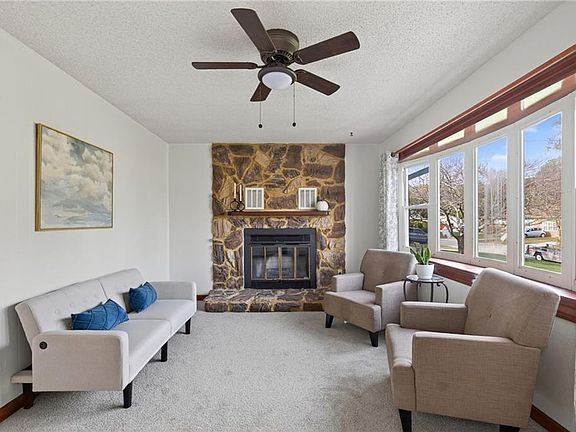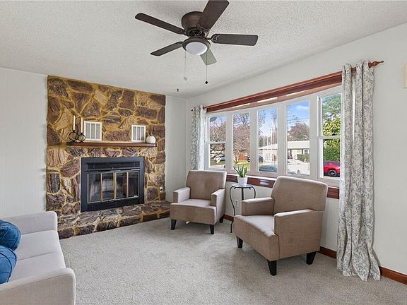 Classic stone fireplaceNeatly landscaped lawnFenced backyardNew carpetUpdated fixturesNew vanity