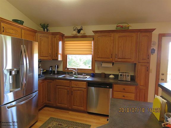 Spacious 4 bedroom home beautiful lot overlooking the hills in an area of newer homes. Living room, dining, kitchen with stainless steel appliances, wood floors, large master suite with separate door to deck, shower and separate tub, two other bedrooms with full bath on main floor, lower level walkout has family room, second kitchen, rec room, exercise area, bedroom and full bath, upper deck, lower patio and lovely views of the hills, whole house generator