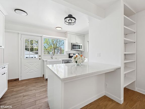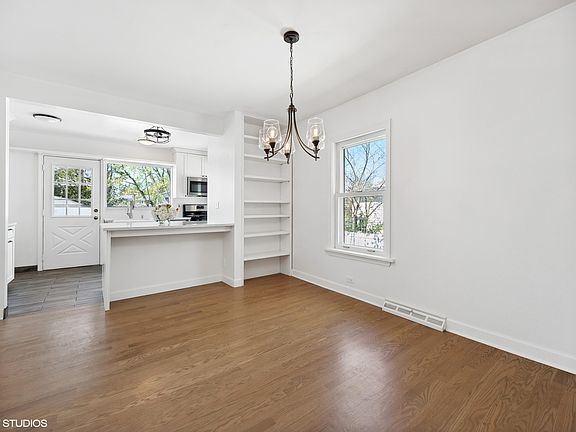 Welcome to this delightful 2 bedroom, 1 bath raised Ranch that boasts a perfect blend of modern updates and classic character. Enter the sunny all season porch with twin bay windows and be taken in by the natural light. This is a great place for your desk, an extra seating area, or a sunny playroom. The renovated kitchen and bath are sure to impress with their updated finishes, breakfast bar, stainless steel appliances and quartz countertops, while the new hardwood floors add warmth and character. 2 spacious bedrooms with ample closet space will ensure everyone has a place to call their own The SW facing, fenced-in yard, that spans nearly the entire length of the property, offers privacy and security for all your outdoor activities and your pets. There is also a deck off the kitchen for easy grilling. And if you want more space to roam or play, head over to the park just a few blocks away. Park your vehicles with ease in the spacious 2-car detached garage, and capitalize on the potential of the unfinished basement that has high ceilings, an exterior entrance and large spaces to work with. Walk to sought after Wilmette Schools (Romona Elementary, Highcrest Middle School and Wilmette Jr. High). With a newer roof, furnace, and hot water heater, this home offers peace of mind and worry-free living... so you can focus on the fun stuff. Don't miss out on the opportunity to make this home your own.