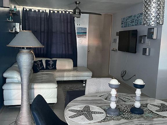 Walk up apartment located on the third floor on the Apartment Building D. This property enjoys a 24 hr security guard and three swimming pools: Alegria, Ensueño and the pool of the Club House which also has a basket ball court. This three bedroom two bath comes totally furnished and has two pkgs with a storage on the first floor. Enjoy the peaceful apartment in a privileged location near Restaurants, Shopping areas, 2 minutes from Puerto del Rey, 5 mins from Croabas and Roosevelt Roads great to go to Culebras and Vieques!..