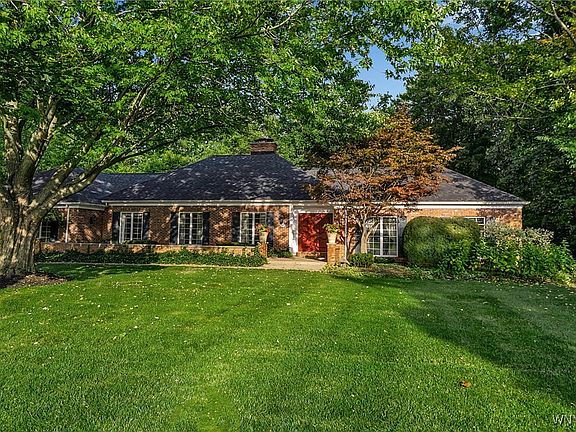 The beautiful marble foyer sets the tone as you enter, leading into spacious, light-filled rooms throughout. The family room impresses with custom built-in bookcases and a wood-burning fireplace, complemented by a second fireplace in the living room for timeless warmth and style. Double French doors open to a generous patio with awning, overlooking a beautifully landscaped backyard framed by mature trees—a serene and private setting for entertaining. The formal dining room provides an elegant backdrop for gatherings, while the expansive kitchen showcases granite countertops, a center island, and abundant cabinetry. The primary ensuite offers double closets, private vanity area and step-in shower. First-floor laundry for added convenience and updated guest bath. Oversized room dimensions, abundant storage, and tasteful details throughout highlight the home’s exceptional character and charm. Plenty of additional space in the basement as well. Located on a quiet cul-de-sac, just minutes from the Village of Lewiston, Niagara Falls Country Club, the thruway, and the Canadian border. A brand-new roof in August 2025, HWT in 2023, and Lennox furnace in 2018 completes the package, making this a wonderful opportunity in one of Lewiston’s most sought-after settings.