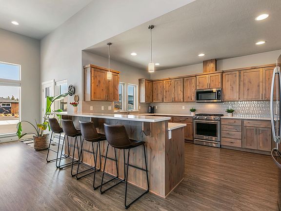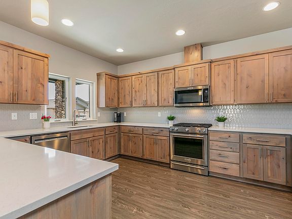 Must-see in Canyon Rim Village! This single-level home features a 3-car garage & RV parking. Enjoy a bright, open floorplan with spacious living areas & oversized bedrooms. The Great Room boasts a floor-to-ceiling gas fireplace, while the open kitchen offers a breakfast bar, quartz counters, full-height backsplash, SS farm sink, gas range, dishwasher & pantry. The primary suite includes a walk-in closet, step-in shower & dual vanities. Two guest rooms share a full bath. Laundry room with sink & garage access. Wood-look laminate flooring, carpeted bedrooms & luxury vinyl plank in baths. Covered patio, fully landscaped with sprinklers. Near Community Park & Dry Canyon Trail!