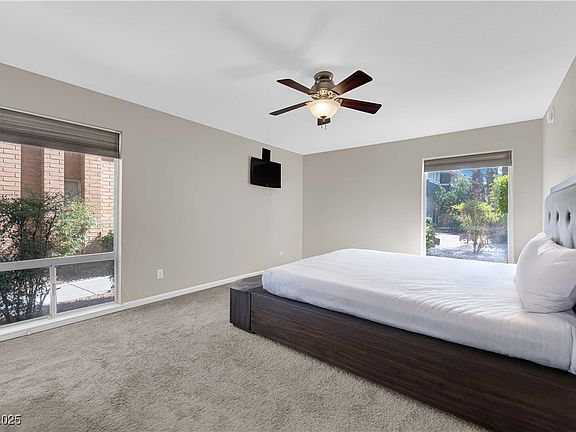 Welcome to the historic Las Vegas Country Club! This charming first-floor 1-bedroom, 1-bath condo offers the perfect blend of comfort and convenience in one of the city’s most iconic guard-gated communities. Step inside to find fresh paint and brand-new carpet, creating a move-in-ready space. The open living area flows seamlessly to both a front porch overlooking the pool and spa, and a private enclosed rear patio—ideal for indoor-outdoor living. The spacious primary suite features a large walk-in closet, while the wide hallway closet provides plenty of extra storage. Steps away, enjoy the Monterey Fitness Center, community BBQ area, and free laundry facilities conveniently located across the parking lot. The Las Vegas Country Club places you in the heart of it all—minutes from the Strip, UNLV, the airport, and world-class dining, and entertainment. HOA fees cover water, sewer, trash, landscaping, ground maintenance, and more, offering worry-free living in a truly vibrant community.