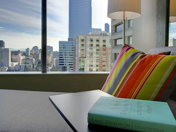 Luxury condo on the 33rd floor at Olive 8, heart of downtown Seattle. Live in the sky above the Hyatt hotel with wonderful city view. Building details: http www.olive8condos.com/ Unit has 1 bedroom, 2 bathrooms (tiled with gorgeous marble and granite countertops), kitchen with high-end appliances and stone countertop. Fireplace in living room. In-unit washer/dryer. Building has common party room, lounge, balcony with BBQ, dog walk area. Available amenities also include: Olympic-size saline swimming pool, spa, gym and yoga room, restaurant; plus room service, drycleaning and housekeeping at discounted prices. 24 hour concierge. Just minutes on foot to South Lake Union. Microsoft connector bus stop outside the building. Rent includes; water, sewer, gas utilities, storage unit. Parking space: extra $200 per month. Pets extra. Upfront payment: 1 month + last month + deposit + $150 non- refundable cleaning fee. Please email for viewing. Hi