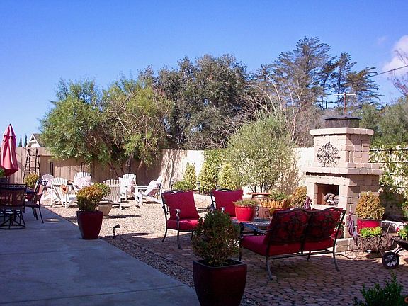 Spectacular single story 'Bluffs At Mesa Oaks' home! Built in 2005. Shows as New! Numerous beautiful custom features! Plenty of archways, granite & tile! 8 ft tall doors. Open floor plan. Oversized kitchen with travertine backsplash, hammered copper sink, convectional oven microwave, super custom granite center island and computer niche! Formal living room and dining room! Two separate bedroom wings: Large master suite at rear, 2 large bedrooms plus another computer niche up front. Beautifully landscaped 1/4th acre perimeter lot with front & rear deco lights. Gorgeous cobblestone patio with gas fireplace! Instant hot water circulator. Long driveway! Views. This is a must see home for the most discerning Buyer!