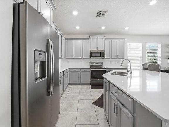 Welcome home to 737 Panical Dr — where modern living meets thoughtful design in one of Apopka’s most desirable communities! This beautifully maintained two-story home offers the perfect blend of comfort, style, and functionality. As you enter, you're greeted by a flex room to your left, a versatile space perfect for a home office, creative studio, reading room, or play area. The flow continues into the heart of the home — a bright, open-concept kitchen that any chef will love. Enjoy sleek gray cabinetry, pristine countertops, ample prep space, and a seamless connection to the shared dining and living areas. Oversized windows flood the space with natural light, making the entire first floor feel warm, airy, and inviting. One of the biggest highlights: the primary bedroom is conveniently located on the first floor, offering privacy and ease of access. The ensuite bathroom features a spa-inspired layout with a soaking tub, separate walk-in shower, dual vanities, and modern tile finishes. Upstairs, you’ll find two generously sized bedrooms and a full bathroom — thoughtfully positioned on opposite sides of the second floor, giving each occupant privacy. Step outside to your covered lanai overlooking a spacious backyard, ideal for relaxing, entertaining, gardening, or enjoying peaceful morning coffee. With an EV charging station in the garage, this home is truly future-ready. Built in 2019, the home is equipped with modern, efficient systems—including the roof, AC unit, and water heater—from the same year, providing peace of mind and long-term value. Located in a quiet, family-friendly community with sidewalks and mature landscaping, you'll enjoy a true neighborhood feel while remaining close to everything you need. Nestled in a quiet, family-friendly community with sidewalks and mature landscaping, this home is minutes from shopping, dining, schools, and major highways including SR-429, SR-414, and US-441—offering quick, easy access throughout Central Florida. This home delivers convenience without sacrificing tranquility. Schedule your showing today — this gem won’t last long!