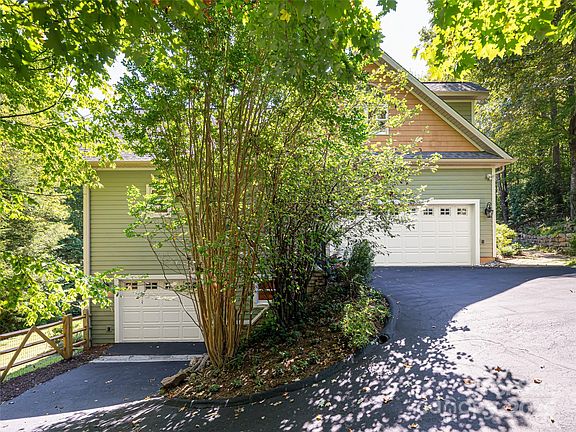 Farmhouse-style charm meets modern convenience in this gated community home, just 10 minutes from Asheville’s vibrant shopping, dining, entertainment, and I-26. Nestled near the end of a cul-de-sac and backing to serene community woodlands, this home features a main-level primary suite and laundry, a soaring 18-ft great room with stacked stone fireplace, an expansive breakfast bar, a dining room, covered porches on both the front and back, and a large fenced-in backyard. Clerestory and abundant windows flood the space with natural light, while solar panels provide exceptionally low energy costs. The daylight basement offers flexible living—perfect for a home theater, gym, office, craft room, or potential in-law suite. A 2-car garage on the main level and a lower-level garage/workshop offer added versatility and access. Community amenities include an outdoor pool, tennis/pickleball court, cabana, fishing pond, and rare direct access to Pisgah National Forest’s hiking and biking trails.