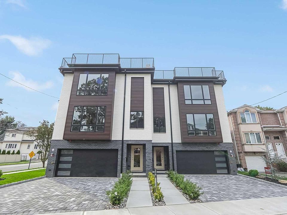 Welcome to this astonishing oversized new build by a premier builder, Senatore and Sons Dev LLC. This Duplex offers oversized rooms throughout and a rooftop deck/suite to enjoy. The kitchen boasts GE cafe appliances, gas range, quartz countertops, Island with waterfall and breakfast nook.24'x13' living room w/fireplace. Dining room 13'8 x19'. Oak and porcelain floors throughout the home. The primary bdrm and bath is breathtaking inclusive of his & her sinks, showers, and closets. very large second & third bedrooms, full bath, laundry and closets complete the second floor. The massive 26x16 rooftop deck is combined with a rec room suite complete with a wet bar and 1/2 bath. The outside facade is a combination of brick, Hardi plank and aluminum MAC strong. 400 series ANDERSON windows, 2 5 ton A/C units, 2 zone hydronic heat. Ground floor and garage have supplemental baseboards off a NAVIEN combie boiler/water heater. No shortcuts here with respect to quality on this build.