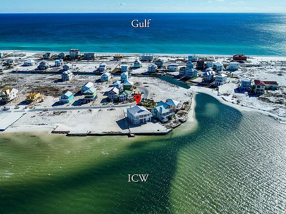 Waterfront 2018 home on rare double-sized lot with 118-ft on the Santa Rosa Sound is the ultimate in beach living with your own white quartz sand beach! Bring your RV, bring your Boat as there is plenty of garage space. Inviting 3 bedroom ,3 bath, seaside beach home with Elevator has walls of tall windows providing refreshing views of the water from the living area, kitchen and master bedroom. Upgraded with many designer touches that include tall leaded glass entry door, an abundance of recessed lighting throughout, great room with 12-ft coffered ceiling & fireplace with mantle. Custom details are the boxed raised ceiling in formal dining room with crown, premium Coretech luxury plank flooring throughout the living area and bedrooms, large tile in the foyer and master bath.