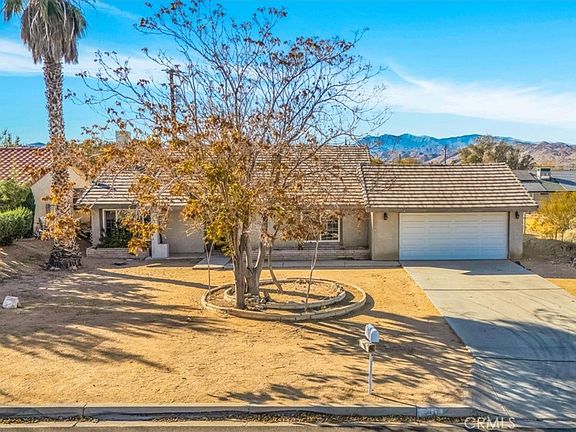 Western Hills Ranchos Delight With Solar! Beautiful 3 Bedroom 2 Bathroom Home Located In One Of The Most Sought After Neighborhoods In Yucca Valley! As you drive through the neighborhood you start to notice that the area is a true rarity and immediately fall in love. Pulling into the driveway you'll notice the well placed mature trees and upgraded concrete tile roofing! Stepping through the front door you're greeted by high ceilings and a spacious living room that features wood laminate flooring, modern ceiling fan, custom light fixture, and beautiful fireplace that ties the room together. Plenty of natural light flows through the dual pane windows creating an open and airy feeling that travels throughout! The kitchen features an abundance of cabinetry, stainless steel refrigerator/oven, built in microwave, and plenty of countertop space. The large dining room is perfect for entertaining, hosting holiday dinners, or can be used as a dual space due to its exquisite size! The guest bathroom comes equipped with an upgraded sitting tub & shower, vanity, large mirror, tasteful lighting, and commode. Both of the guest bedrooms have plenty of space and include updated ceiling fans, as well as ample closet sizes! The large primary bedroom features a private bathroom with dual vanity, walk in shower, and tasteful lighting! Stepping into the backyard you find a great area to host BBQ's, create a garden, house your pets, or anything else you can come up with! Additional features include HVAC for heating and cooling, 2-car garage, solar system for efficiency and a whole lot more! Call today for your private showing before this one is gone!