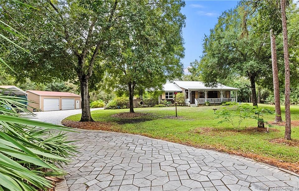 Discover your рrіvаte countrу oаsis on this pіcturеsque 5-acre property in popular Palm City Farms. This 3-bedroom, 2-bath home with an attached 2 car garage features many updates such as a new metal roof, plank tile flooring, newer a/c condenser (2002) and newer water heaters. Enjoy outdoor living on the spacious back deck. The detached 2-bedroom, 1-bath guest house offers additional living space perfect for guests or a home office. Other features include a 2-car detached carport and an oversized 2 car detached garage. Spend peaceful afternoons fishing in the stocked pond amidst the tranquil wooded surroundings. This property offers the perfect blend of comfort and tranquility with easy access to I-95 and the Turnpike.