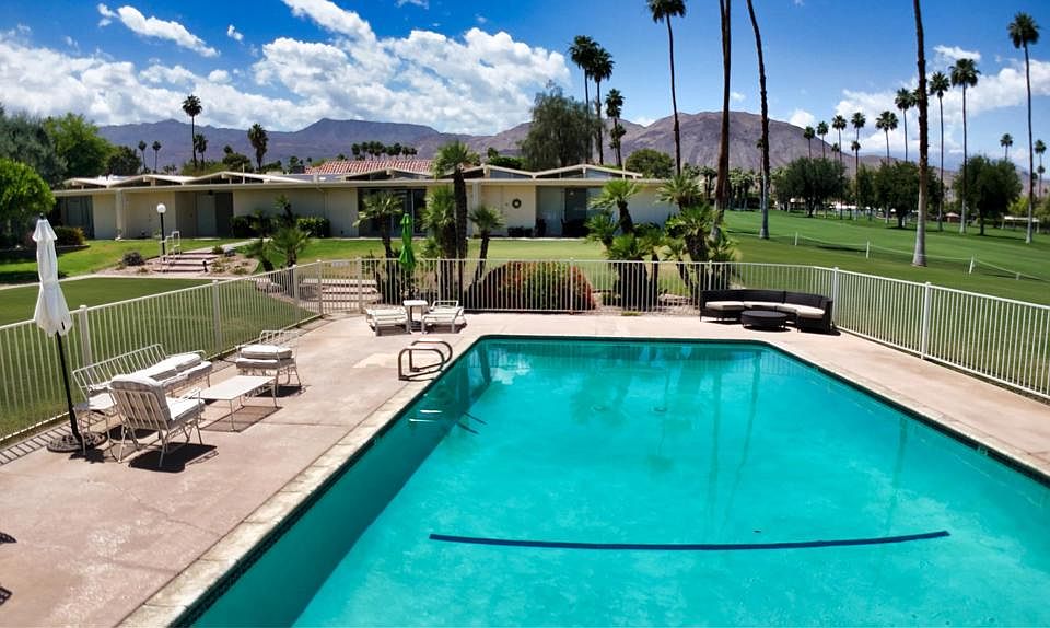 MOTIVATED SELLER! Price reduced to prove it! This is your opportunity to secure a great deal-submit your offer A true mid-century modern treasure just blocks from El Paseo--Palm Desert, CA famed shopping, dining, and art district. Set on the lush fairways of the historic Shadow Mountain Golf Course, this move-in ready condo offers mountain, golf course, lake and pool views in one of the most desirable locations in the desert.From the moment you step inside, you'll appreciate the architectural integrity of the era with dramatic vaulted wood ceilings, clerestory windows, and clean modern lines. The home is thoughtfully updated for today's comfort, featuring a remodeled kitchen with soft-close cabinetry, tile flooring throughout, custom plantation shutters, new dual-pane sliding glass doors, tankless water heater, and fresh interior paint. Enjoy relaxing on your patio with breathtaking views, or take a dip in the community pool framed by panoramic lake, golf course and mountain views, plus mature landscaping and fruit trees . This low-HOA community is ideal for full-time living, a winter getaway, or a rental income opportunity. The Shadow Mountain Golf course has a newly renovated clubhouse offering social activities and events and public golf course for you to check out and enjoy.This is mid-century living at its finest--in one of Palm Desert's most vibrant and walkable neighborhoods.