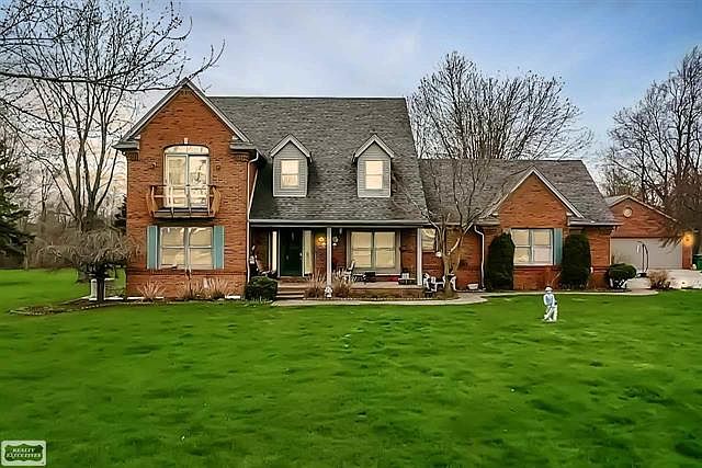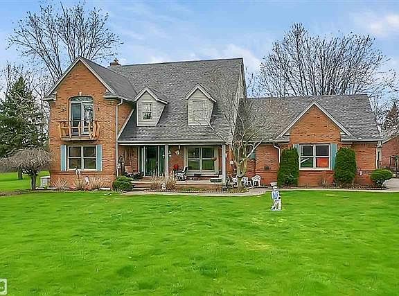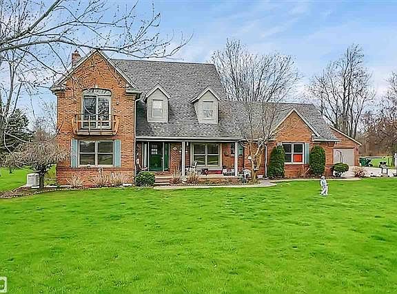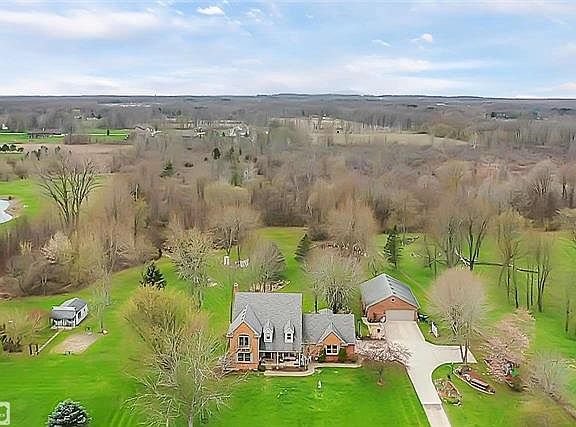 Rare Walk-Out 3 Bedroom (possible 4th via 30'x11' upper Bonus Room) & 4 Bathroom Colonial built on over 10 Pristine Acres set 700' back off a Paved Road with Natural Gas in the Romeo School District! 40'x32' Pole Barn accessible on 3 sides: 8' Dbl-Entry Garage Door, 8' Single Back Garage Door + Side-Entry Steel Door. High-Caliber upgrades include Whole House Generac Generator, Invisible Fence, Expansive Deck & 14'x 19' She-Shed, Pella Double Pane windows throughout. Build package included 2"x6 "Studs, extra deep Block foundation & Copper pipes. Charming Covered Front Porch leads into the 2-Story Foyer flanked on one side by a large Front Room & the other leading to a corner entry Den accessed by a pair of beautiful French Glass Panel doors. Gourmet Granite & Stainless Kitchen with a turreted, plank-ceiling Dining Nook adds drama to this warmly appointed Hickory Kitchen with Chef-size Island that anchors the open space adjoining a generous Living Room that's anchored by a lovely sto
