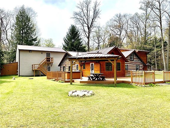 A spectacular Log Home walking distance to Lake Erie. There is a foodies kitchen with a large island. Master has a loft for storage or more sleeping. The 2rd bdrm. is up the spiral stairs with a balcony that overlooks the great room. Huge stone fireplace with beamed ceilings. There is an fully functioning one bedroom in law suite/ apartment above the huge garage. This house has been restored and every detail has been updated. Wait to see the decks and hot tub.