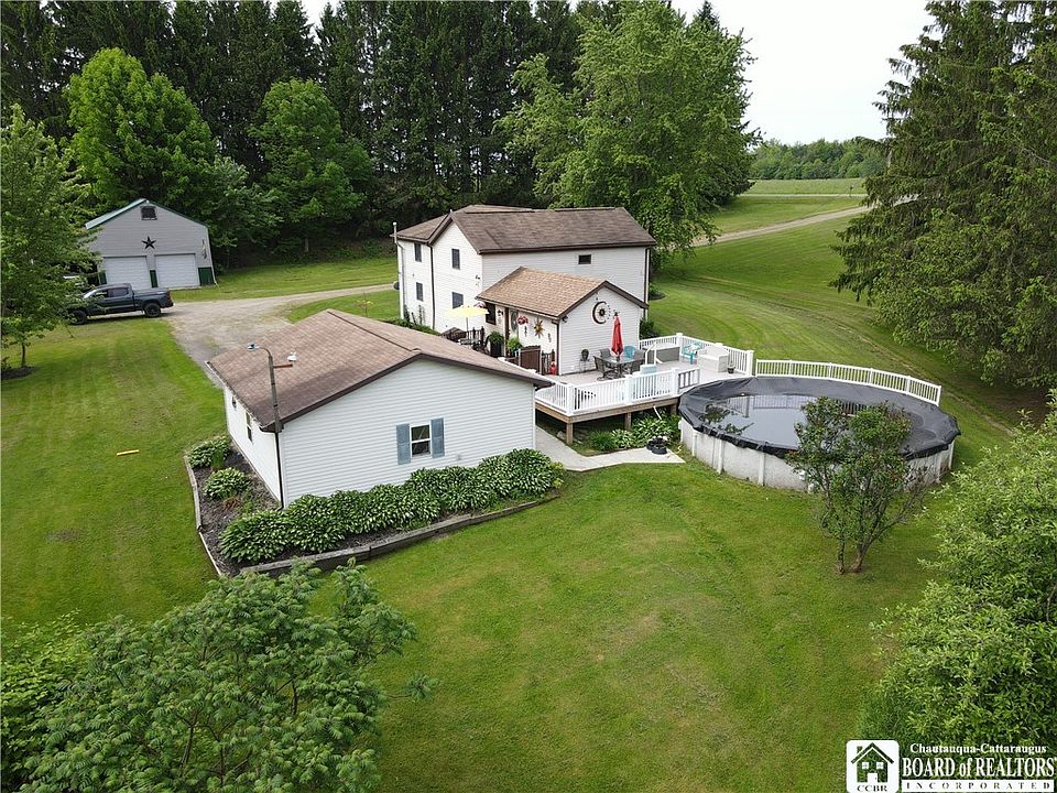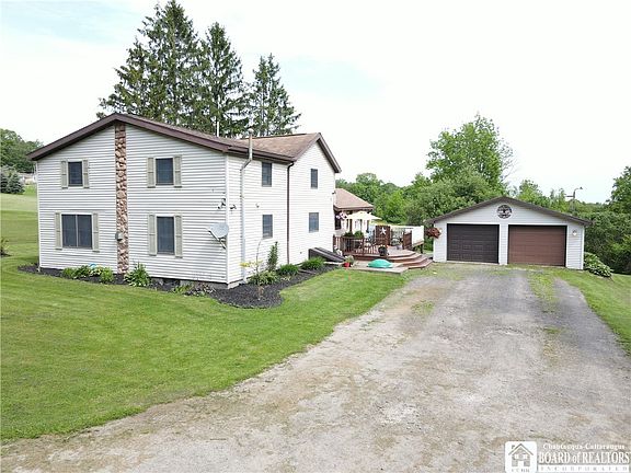 Escape to tranquility in this charming rural retreat! Nestled on 2.1 acres near the serene Cassadaga Lake, this well-maintained 3-bed, 1.5-bath home offers idyllic countryside living. A delightful oasis awaits outdoors, where an above-ground heated pool calls for leisurely afternoons spent soaking up the sun. With the new spacious composite deck and secure railings, the pool area becomes a haven for relaxation and entertainment. Parking dilemmas become a thing of the past with the inclusion of not one, but two generously-sized garages on the property. With room for up to five vehicles, there's ample space for your car collection, outdoor gear, or hobby projects. Stepping inside, you're greeted by a large mudroom, complete with convenient first-floor laundry. But the allure of this property doesn't end there. With an additional 47.9 acres of pristine land available for purchase behind and adjacent to the home, the opportunity to expand your domain and create the ultimate rural retreat awaits. Cassadaga Schools.