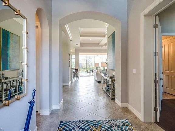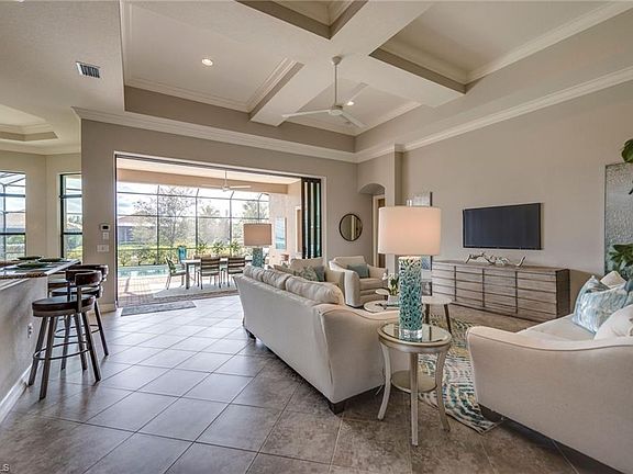 Professionally decorated, this Jasmine II floor plan has been handsomely furnished and is in model-like condition. This floor plan by Stock is part of their finest Sapphire Series with impact glass throughout, 10' sliding glass doors to enjoy the lake view, crown molding and spacious cabinetry. Located on a south-facing premium lake lot, the outdoor kitchen and gracious lanai set the stage for the perfect tropical getaway. Lantana is a community within the Olde Cypress Golf Community and offers many outstanding amenities like tennis, state of the art fitness center, pool, spa, business center, renovated clubhouse, golf memberships, and fine dining. This is the Naples lifestyle you've been waiting for, your very own private tropical resort. House Furniture Package Available To Buy - $45,000