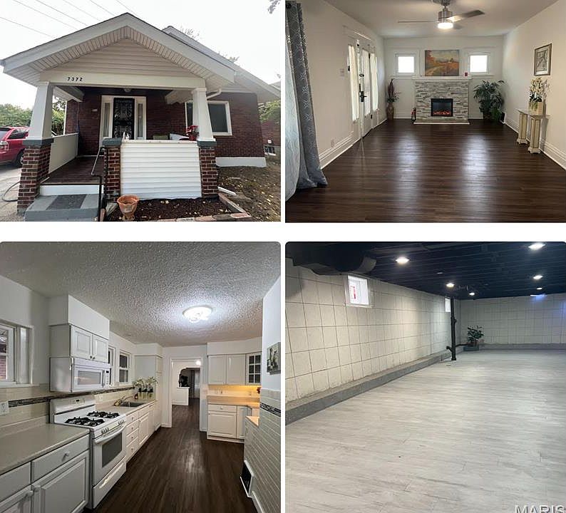 Beautiful 2 bedroom 1 bath with a finished basement located in a quite street. House feature a coved front porch. New flooring through out. Huge living room with a electric fireplace. A separated dinning. Updated kitchen with a plenty of counter space. A bonus room off the kitchen can be use as an office or easily covered to 3rd bedrooms. Large size bedrooms. Need more space, a partial finished basement perfect for entertainment. One car garage and patio in the back.