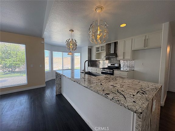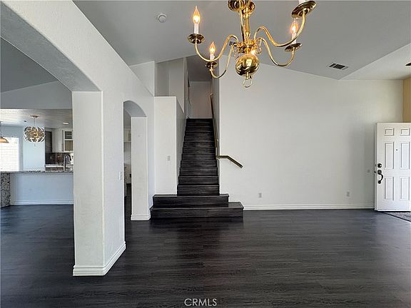 Welcome to this charming 4-bedroom, 3-bath home located in desirable North Fontana. The entry opens to a formal living and dining room with soaring cathedral ceilings, creating an airy and inviting atmosphere. The family room flows seamlessly into the updated kitchen, complete with a waterfall island and stainless steel appliances perfect for entertaining.