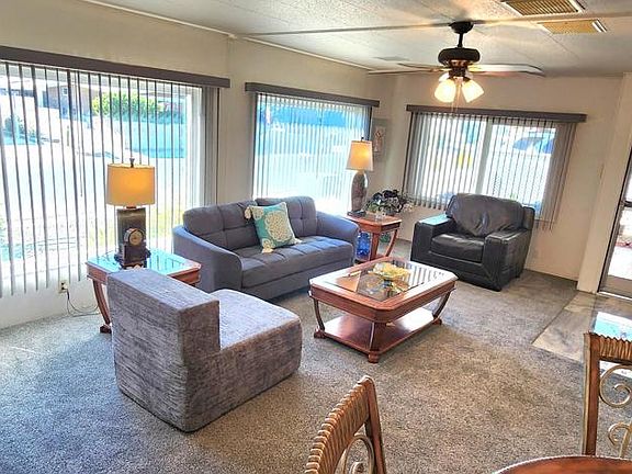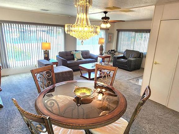 This spacious 2-bedroom, 2- bath residence is situated on a sought-after interior street and features large dual-pane windows with vertical blinds, ensuring abundant natural light and view of the mountains. Significant enhancements have been professionally completed to improve energy efficiency, including new heating and air conditioning, ceiling fans, a new roof, and solar system. The solar lease can be easily transferred to buyer. Newer carpeting in the living room, dining area, and bedrooms provides added elegance and comfort. Well-appointed kitchen affords convenient access to both the formal dining room and a generously sized family room/den, presenting an excellent venue for entertainment. The primary suite offers double closets, while the en-suite bath features a large soaking tub, dual sinks and walk-in shower; the guest bathroom has been updated. This well-maintained home is move-in ready for new owners. Residents of Palm Desert Greens benefit from proximity to shopping, dining, casinos, and medical facilities. A low monthly fee of $400 includes complimentary golf, 24/7 guard-gated security, cable television, Wi-Fi, trash removal, an on-site restaurant and bar, and numerous other amenities. Please contact us to schedule a private tour of this exceptional home.