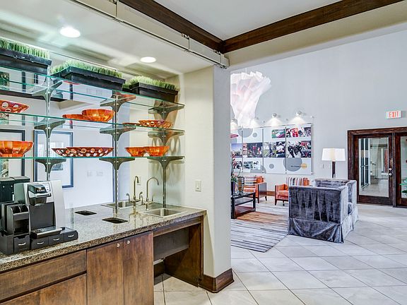 - Exterior features: 9-Foot Ceilings, Amazon Lockers, Arched Doorways*, Brushed Pewter Hardware, Built-In Computer Niches*, Cardio Machines, Coffee Bar, Conference Room, Custom Rounded Corners, Decorative Crown Molding, Demonstration Kitchen, Fax, Scanner & Printer Available, Flat Screen TV, Flooring: Wood, Game Room, High-speed Internet Ready, In Select Apartment Homes*, Oversized Roman Tubs, Three Computer Stations