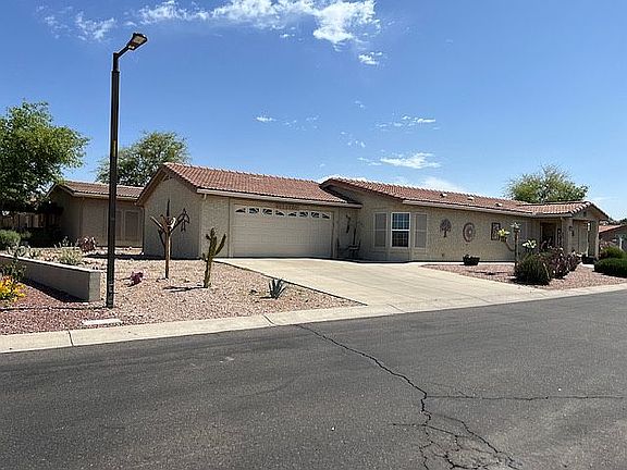 Custom Cochise, 1508 Sq. Ft., 2BR, Den, 2 BA, 2 car oversized garage, partially furnished, corner lot on main street to clubhouse & facilities, full raised living room ceiling, open floorplan with den leading to the garage, island kitchen, new heat pump, Large driveway expandable, Large corner lot, beautiful rear patio areas with view of mountains