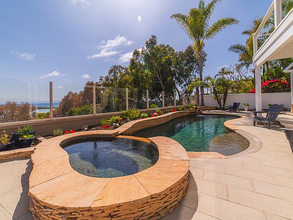 Nestled in the Batiquitos Lagoon, this stunning estate epitomizes luxury coastal living. With sweeping views of the Pacific Ocean, this residence offers an unparalleled retreat. Pacific View Estate is a private gated community. The exterior of the estate boasts a blend of modern architecture and coastal charm, featuring expansive windows that frame breathtaking ocean vistas from every angle. The entrance leads to meticulously landscaped grounds creating a serene ambiance. Step inside to discover an interior designed for both elegance and comfort. The open floor plan seamlessly integrates spacious living areas with natural light flooding through floor-to-ceiling windows. High ceilings and tasteful finishes, such as hardwood flooring and designer fixtures, enhance the home's sophisticated appeal. The gourmet kitchen is a chef's dream, equipped with state-of-the-art appliances, custom cabinetry, and a large center island perfect for entertaining guests. The adjacent dining area offers views of the Batiquitos Lagoon, creating an enchanting backdrop for every meal. The master suite is a sanctuary of relaxation, featuring a private balcony overlooking the Batiquitos Lagoon and the Pacific Ocean, a luxurious en-suite bathroom with a soaking tub, and ample closet space. Additional bedrooms and guest suites provide comfortable accommodations for family and visitors, each designed with attention to detail and ocean-inspired decor. Outdoor living is a hallmark of this estate, ideal for alfresco dining, sunbathing, or simply enjoying sunset views over the water. The pool and spa invite year-round enjoyment, while a short drive to the beaches of Carlsbad ensures effortless strolls along the sand. Pacific View Estate offers privacy and exclusivity while being just a short drive from vibrant dining, shopping, and cultural attractions. This vacation retreat represents the epitome of luxurious coastal living.