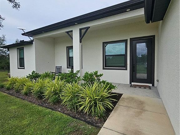 SERNE RURAL OASIS ON 2.5 ACRES Experience refined living in this thoughtfully designed residence, featuring an open floor plan that ensures effortless movement between living areas—ideal for both entertaining and everyday comfort. The split-bedroom layout affords enhanced privacy, while the primary suite is appointed with dual sinks and a generous walk-in shower for a touch of luxury. The gourmet kitchen is equipped with granite countertops, floating shelves, and a spacious walk-in pantry, combining both elegance and functionality for cooks in the house. OUT DOOR AMENITIES Step out onto the expansive patio, which is half screened for optimal comfort, and enjoy Florida’s warm summers in the above-ground pool. As evenings cool, gather around a cozy outdoor fire. The property’s borders adjoin serene wetlands, providing lasting privacy and protection from future development. ADDITIONAL UPGRADES Modern conveniences abound, including an extended garage capable of accommodating a large truck, a tankless water heater, impact-resistant doors and windows, electric connections for a hot tub and RV, a secure electric gate, an asphalt driveway, and an advanced irrigation system. MOTHER IN LAW SUITE A separate 560 sq. ft. mother-in-law suite features custom kitchen cabinetry, granite countertops, and tile flooring throughout. The suite’s spacious bathroom includes a walk-in shower and granite vanity. A large, screened patio for you to enjoy your morning coffee, hot tub which is also included in the sale creating a private and comfortable living environment. SAFETY AND PRACTICALITY For peace of mind, the property is equipped with two generators which are included in the sale. There are hook-ups serving both the main residence and the suite, ensuring reliable power in any circumstance. 20ft Conex is also included in the sale Seize the opportunity to acquire this exceptional rural retreat. Schedule a private tour today to discover the beauty, tranquility, and outstanding amenities this property offers.
